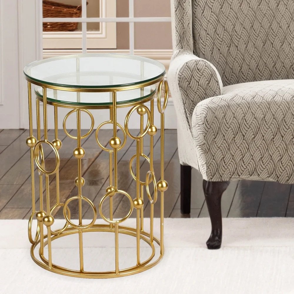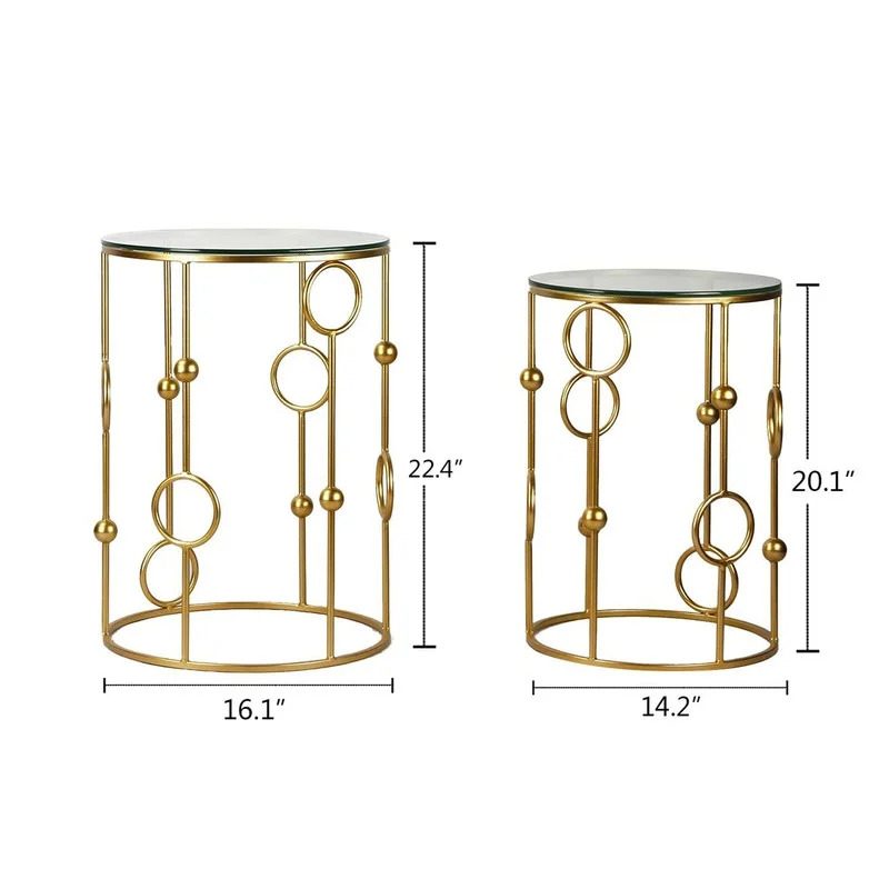 Curate a space straight out of a magazine with the utterly stylish and posh presence of these tables. Designed with meticulous metallic details and gorgeously glamorous in gold, these tables are sure to stun in any space in which they are placed. The metal and glass design nest for convenience, allowing you to tuck these beauties away when it’s time to dance.