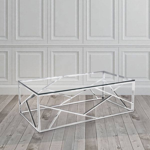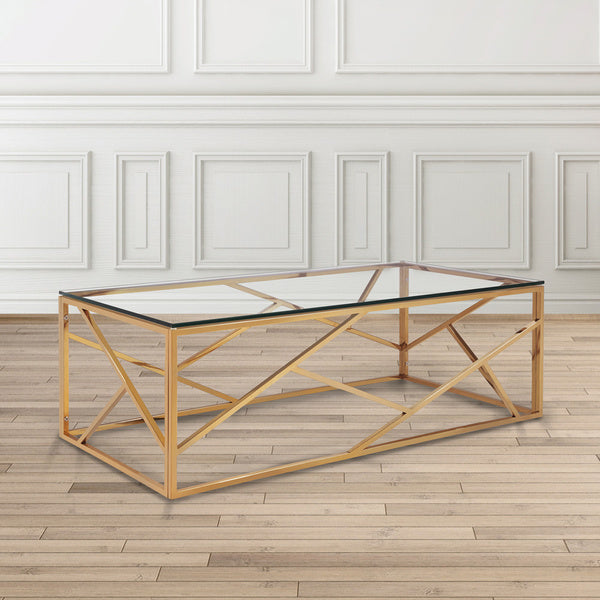 Create a sleek, modern look with this coffee table. this gorgeous coffee table features a unique crisscross design in stainless steel pipes, adding extra visual interest to your space.