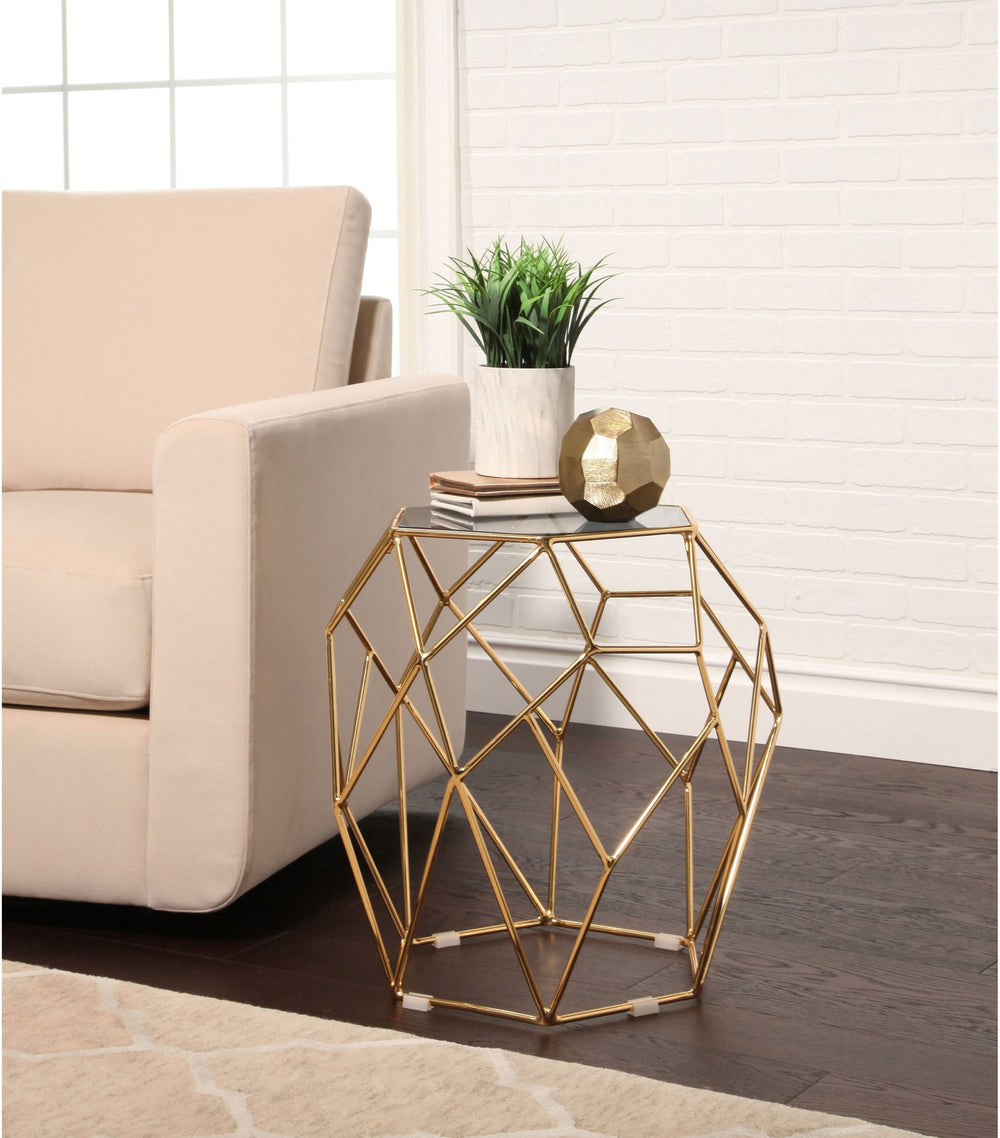 Style your living room with this trend-worthy end table. featuring a drum-shaped metal base for stability and durability, this end table has a tempered glass top for elegant look and airy design.