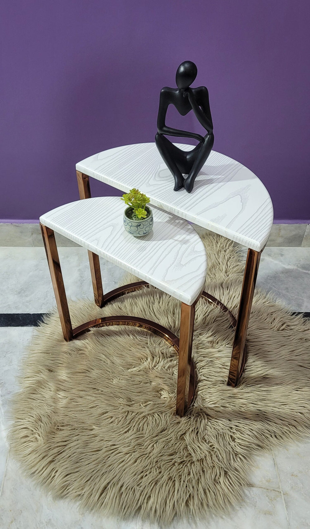 Transform your space with our Half Moon Nest End Table. Crafted with a Black Wood PVC top and Gold Stainless Steel base, this modern marvel combines elegance with practicality.