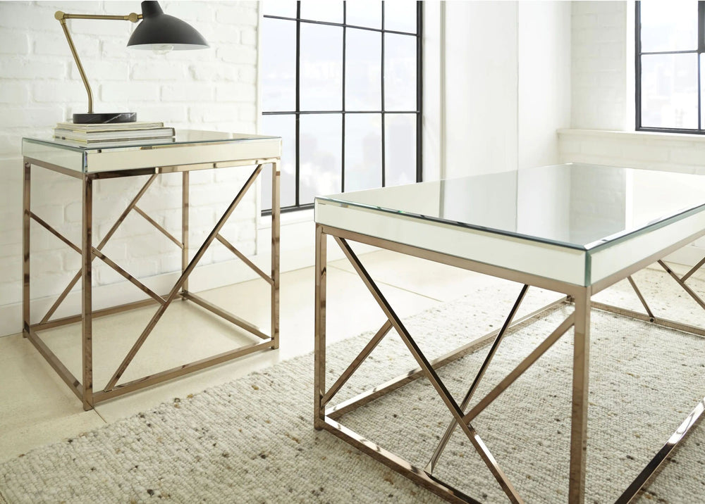 Create a sleek, modern look with this end table. this gorgeous end table features a unique crisscross design in stainless steel pipes, adding extra visual interest to your space.