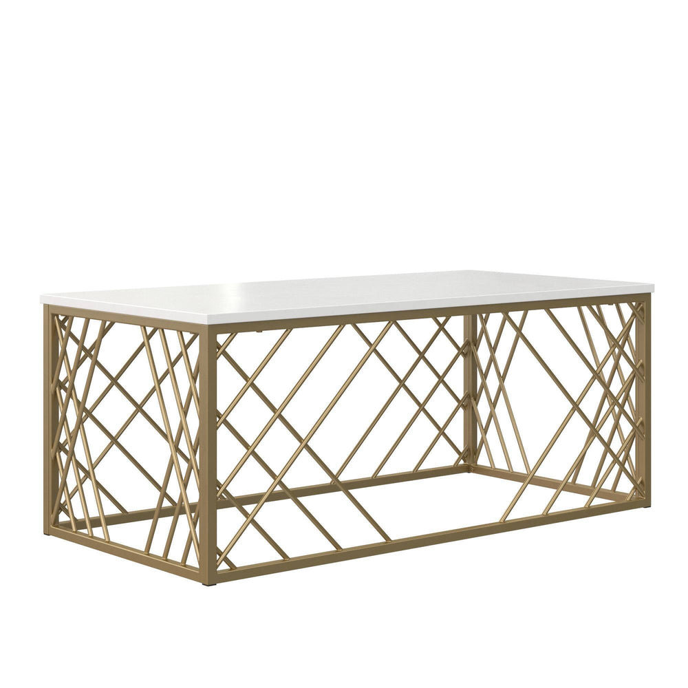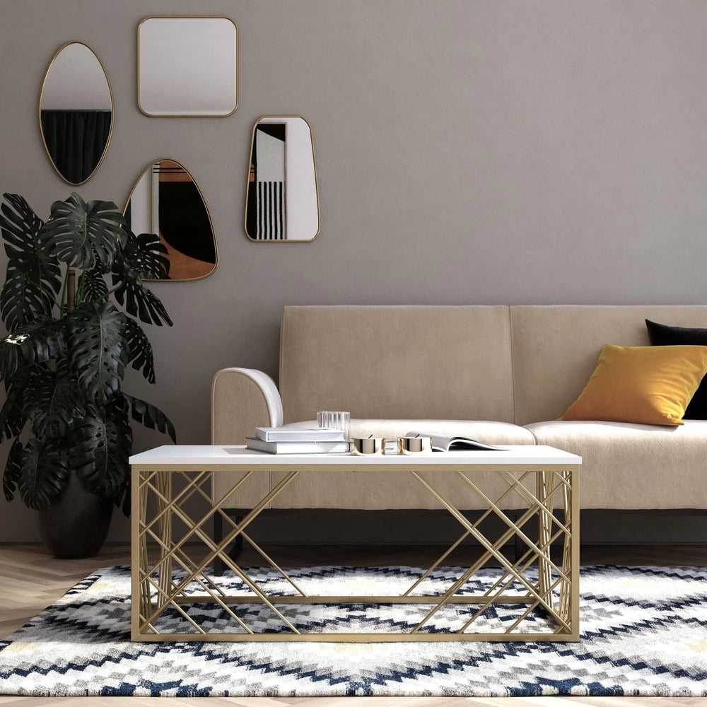 Built with a strong and durable frame, this rectangular cocktail table has a beautiful white tabletop perfect for housing your fave candles, décor pieces. Design also includes a gold metal base with intricate detailing that will make your living room look mod. This Cocktail Table is the accent piece you need to complete your living room and bring your home’s aesthetic to the next level.