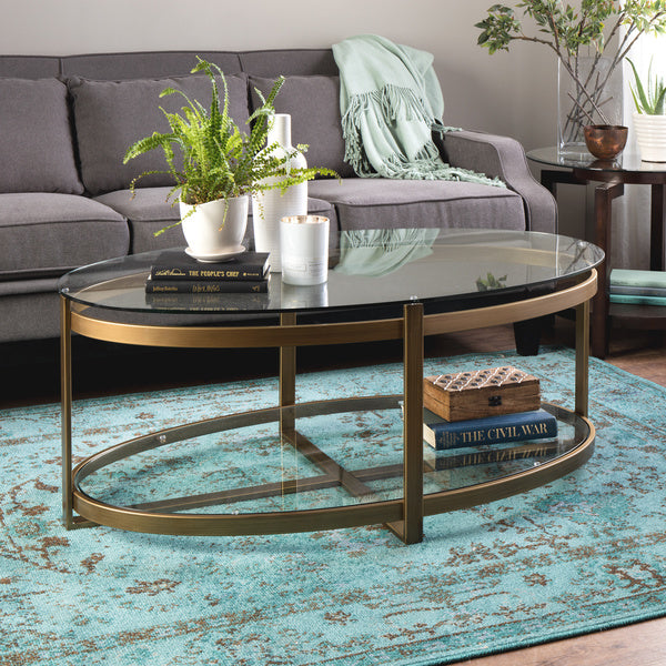 Fashionable and functional, this table features a durable construction and a bottom shelf for added space. the wide oval surface is great for displaying decor or resting snacks while watching your favorite show.