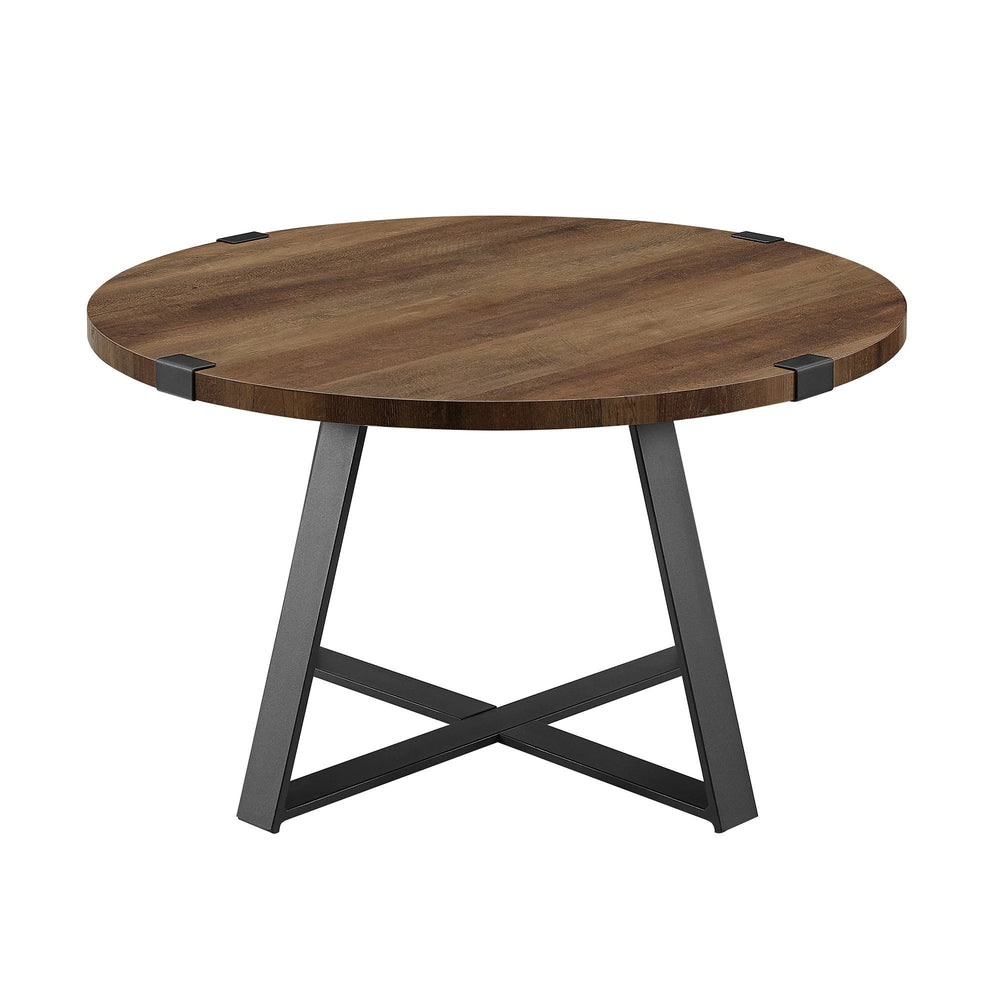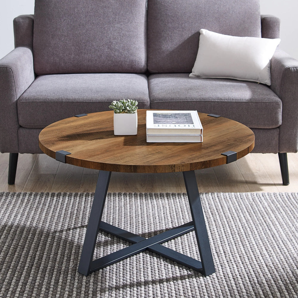 Complement your sofa with this stylish, industrial coffee table. The wood-look top as paired with a black metal base for a mixed materials look. Choose from various top finish colors to match your space perfectly.